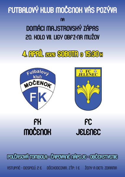 FK Močenok pozýva na zápas túto sobotu, našim súperom budú futbalisti Jelenca