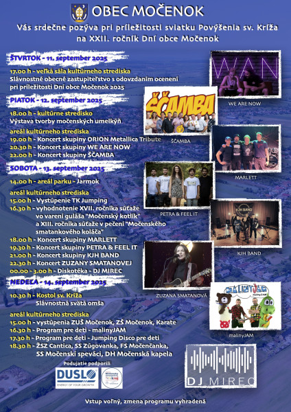 OBEC MOČENOK Vás srdečne pozýva pri príležitosti sviatku Povýšenia sv. Kríža na XXII. ročník Dní obce Močenok.