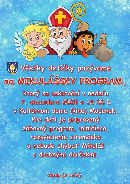 Všetky detičky pozývame na MIKULÁŠSKY PROGRAM,