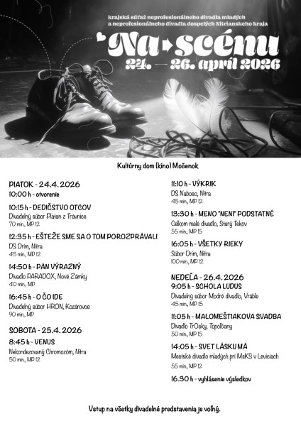 Na Scénu 24. - 26. apríl 2026 v Kultúrnom dome v Močenku