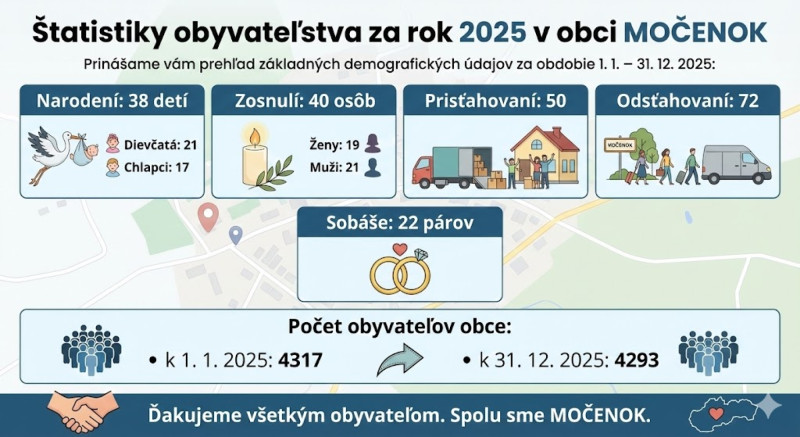Štatistiky obyvateľstva za rok 2025 v obci MOČENOK